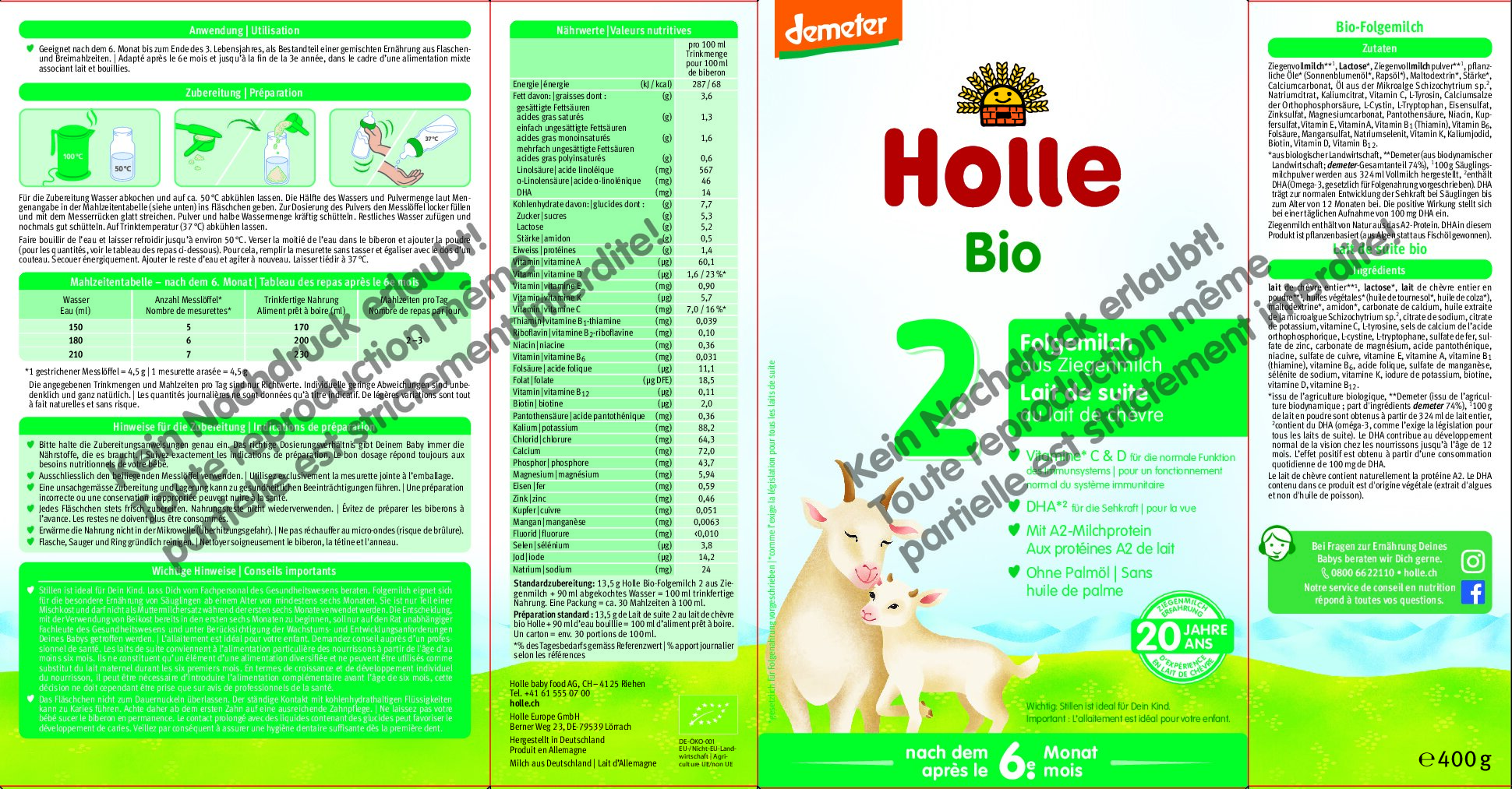 Diese Babymilch ist nach dem 6. Monat als Bestandteil einer gemischten Ernährung aus Flaschen- und Breimahlzeit geeignet. Mit Ziegenmilch in biodynamischer Demeter-Qualität: – Ziegen muss an 365 Tagen pro Jahr ein Zugang zu Frischluft garantiert werden.* – Sie werden mit 100% Bio-Futter ernährt, davon mindestens die Hälfte in Demeter-Qualität direkt vom Hof oder aus der Region. – Ihre Hörner dürfen sie behalten: es sind ihr Sinnes- und Kommunikationsorgan.