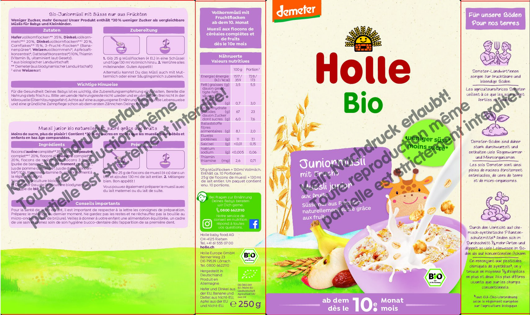 - Mit Hafer- und Dinkelflocken, Cornflakes sowie besonders feinen, leicht zu kauenden Fruchtflocken