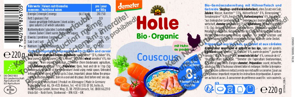 Couscous is a tasty menu of vegetables, couscous and precious organic chicken meat for babies and toddlers of junior age.