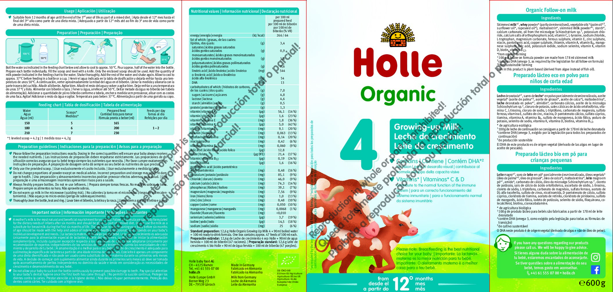 Skimmed MILK1, WHEY powder* (partly demineralised), vegetable oils* (palm oil*3, sunflower oil*, rapeseed oil*), maltodextrin*, skimmed MILK powder*1, starch*, calcium carbonate, oil from the microalgae Schizochytrium sp.2, potassium chloride, calcium salts of orthophosphoric acid, vitamin C, L-tyrosine, sodium chloride, L-tryptophan, magnesium carbonate, ferrous sulphate, vitamin E, zinc sulphate, niacin, pantothenic acid, copper sulphate, thiamine, vitamin A, vitamin B₆, manganese sulphate, folic acid, potassium iodide, sodium selenite, vitamin K, vitamin D, biotin, vitamin B₁₂.