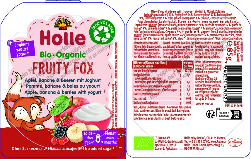 Produktdetails | Fruity Fox – Manzana, plátano y bayas con yogur