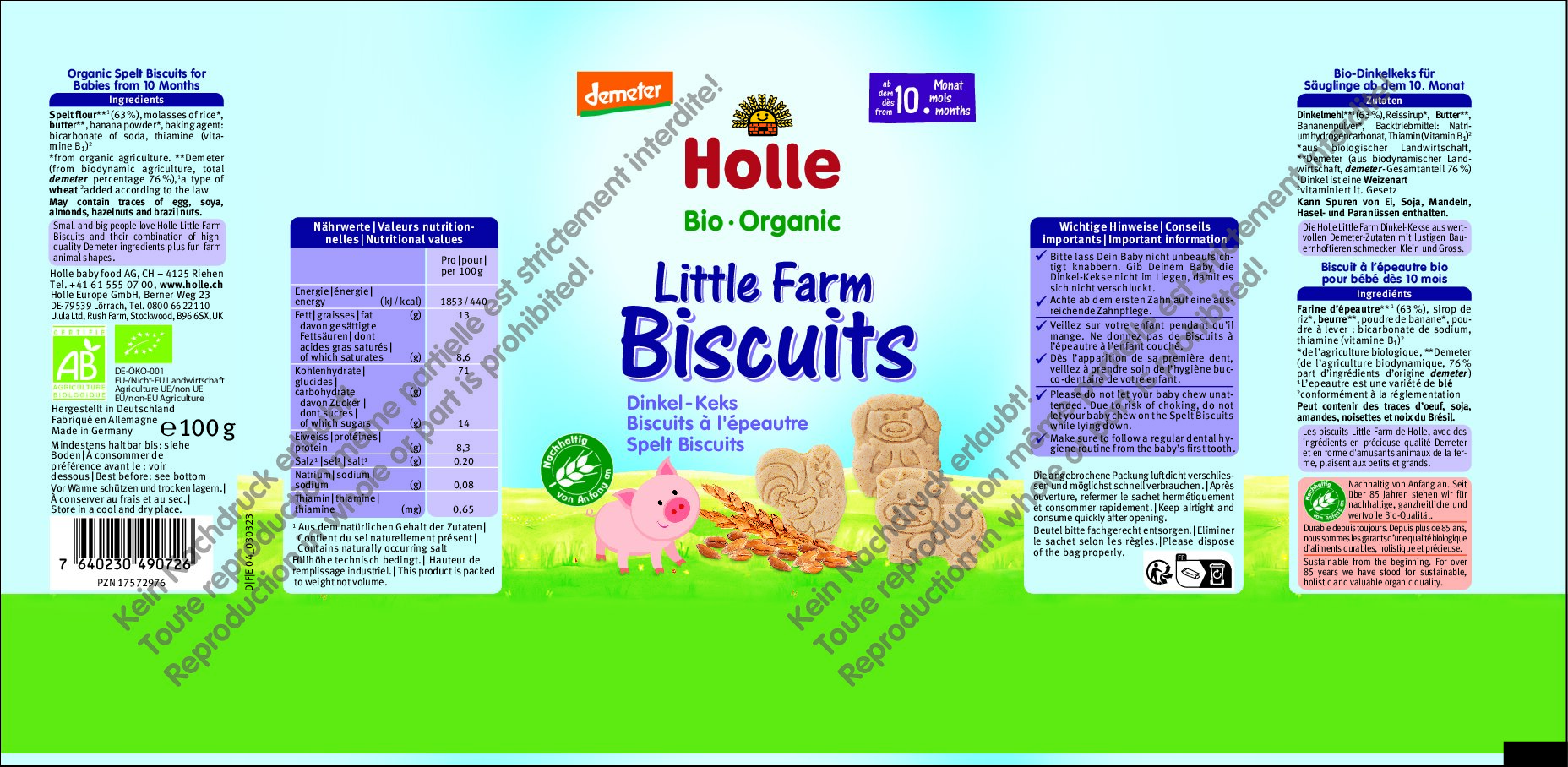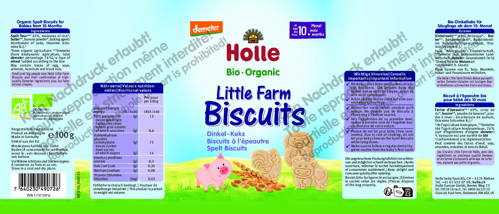 Las galletas de espelta Holle Little Farm, elaboradas con valiosos ingredientes Demeter y divertidos animales de granja, son del gusto de grandes y pequeños.