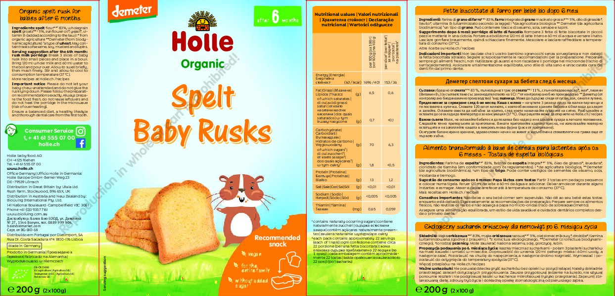 El bizcocho tostado ecológico para bebés Holle con valioso espelta no puede faltar en ningún hogar. Para bebés a partir del sexto mes, como delicioso puré de bizcocho tostado y, más adelante, para aprender a mordisquear y masticar. Crujiente, horneado al horno, el bizcocho tostado ofrece variedad en la caja de la merienda o en la mesa familiar. Ya sea solo, salado o dulce, siempre es un placer con la crema para untar favorita.