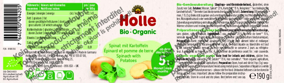 El tarrito de espinacas con patatas para bebés es especialmente adecuado para la introducción progresiva de alimentos complementarios y la preparación de los primeros menús, permitiendo conocer nuevos ingredientes. El puré de verduras es finamente triturado y solo se utilizan los mejores ingredientes orgánicos y Demeter procedentes de cultivos estrictamente controlados para los tarritos Holle.