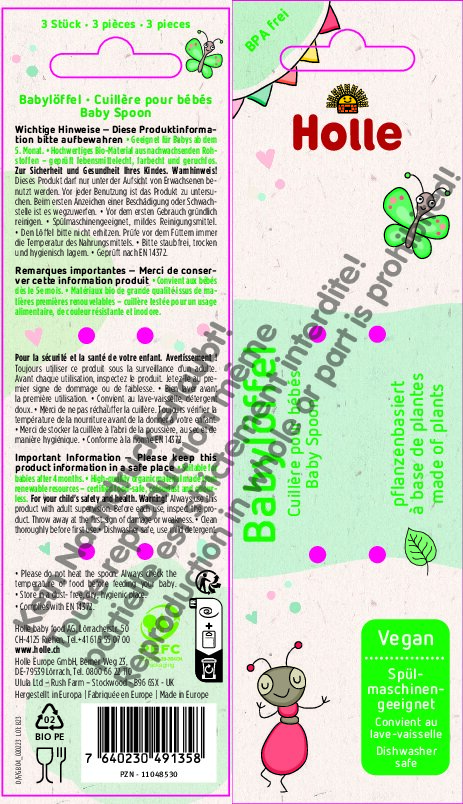 • Cuillère pour bébé en PE bio. Le PE bio est composé à 98 % de matières premières renouvelables.