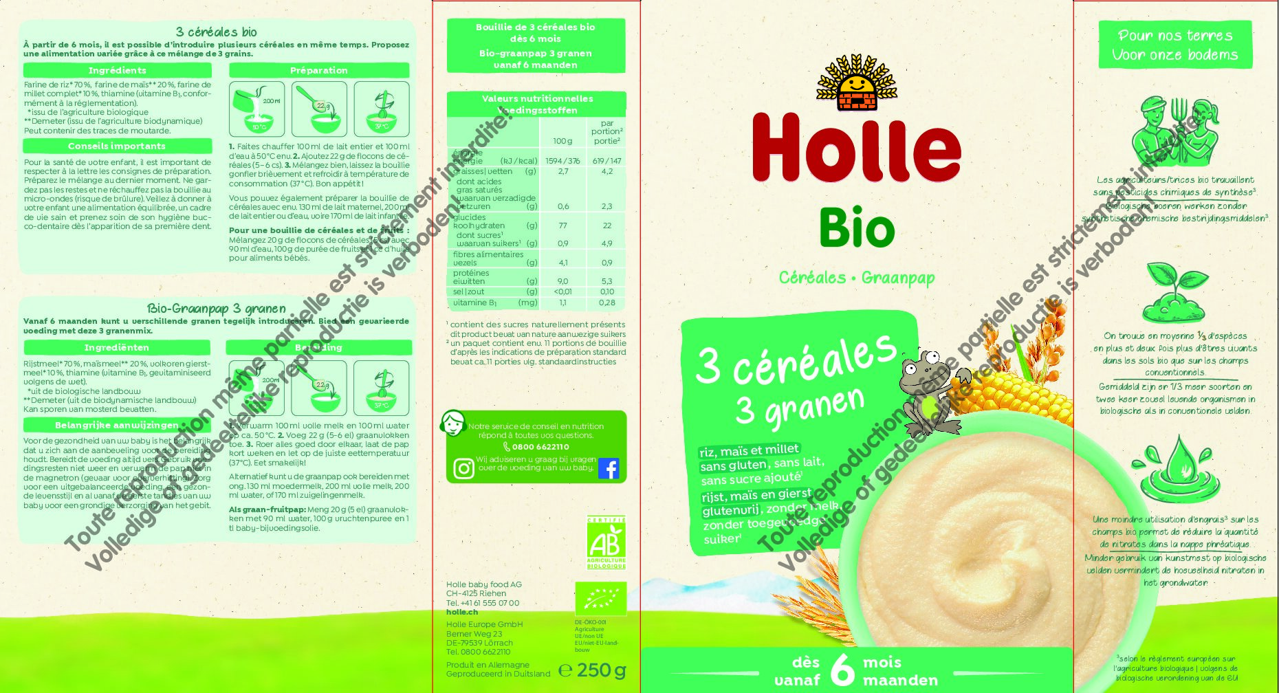 Farine de riz * 70 %, farine de mais** 20 %, farine de millet complet* 10 %, thiamine (vitamine B1, conformément à la réglementation)